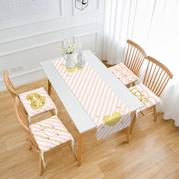 Aşk Temalı Gold Detaylı 4 Pofuduk Sandalye Minderi ve 1 Runner Seti