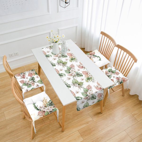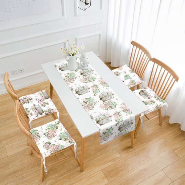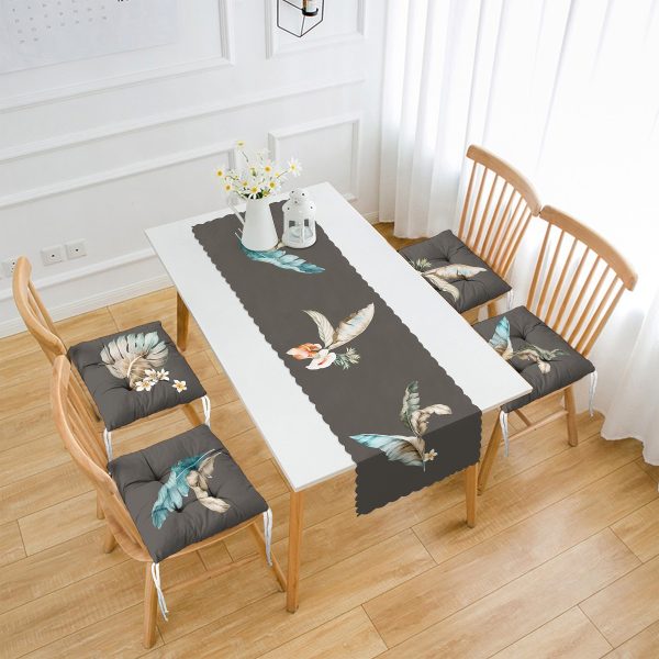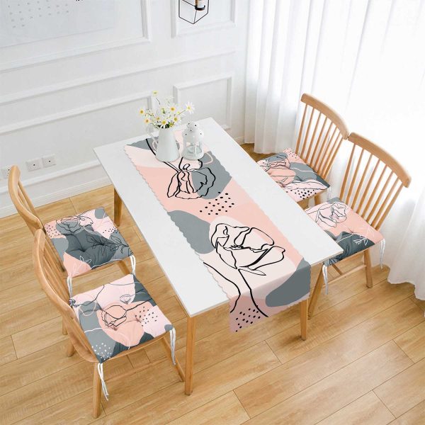 Çiçek Motifli Dijital Baskılı 4 Pofuduk Sandalye Minderi ve 1 Runner Seti
