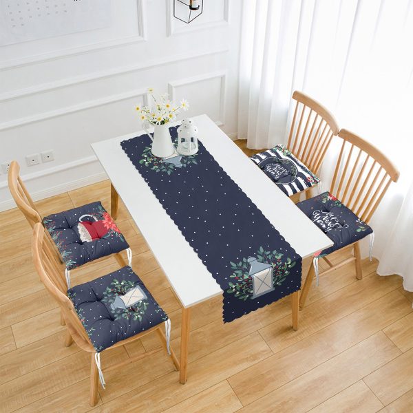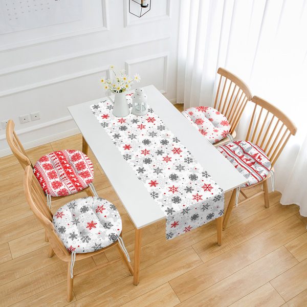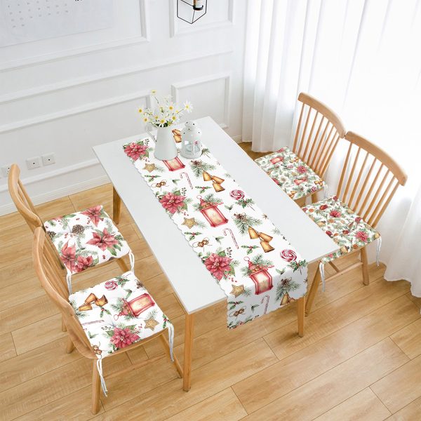 Mery Christmas Yılbaşı Tasarımlı 4 Pofuduk Sandalye Minderi ve 1 Runner Seti