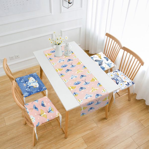 Renkli Kelebek Özel Tasarımlı 4 Pofuduk Sandalye Minderi ve 1 Runner Seti