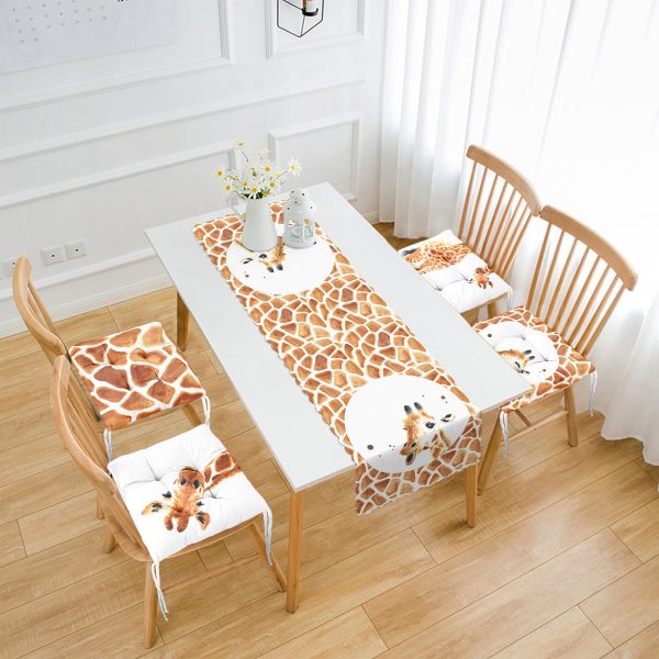 Zürafa Özel Tasarımlı 4 Pofuduk Sandalye Minderi ve 1 Runner Seti