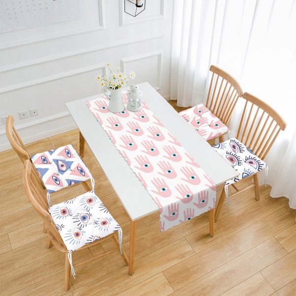 Fatıma’nın Eli & Göz Tasarımlı Dijital Baskılı 4 Pofuduk Sandalye Minderi ve 1 Runner Seti