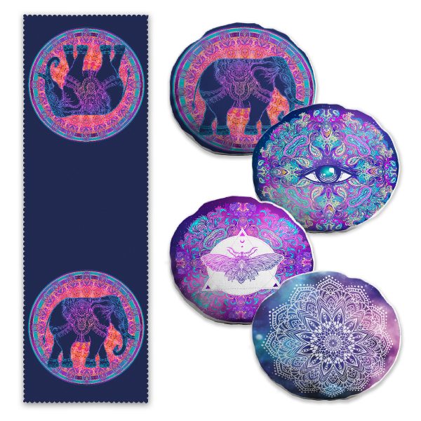 Etnik Fil Tasarımlı 4 Yuvarlak Kırlent Kılıfı ve 1 Runner Seti