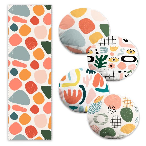 Soyut Renkli Özel Tasarım 4 Yuvarlak Kırlent 1 Runner Seti