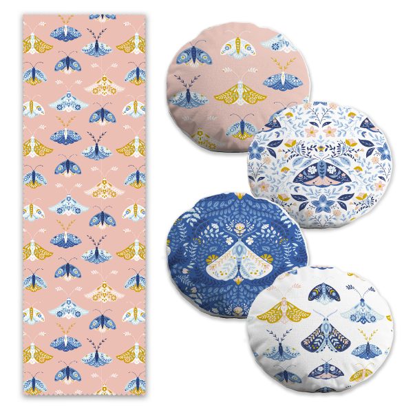 Renkli Kelebek Özel Tasarımlı 4 Yuvarlak Kırlent 1 Runner Seti