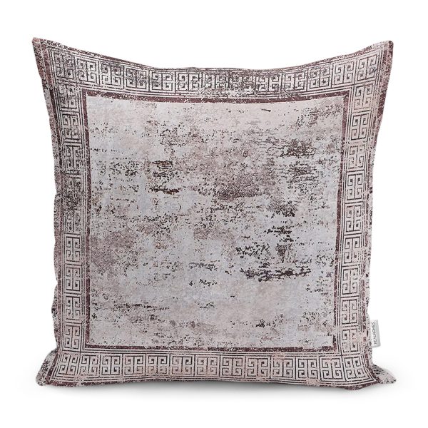 RealHomes Bordo Zeminde Eskitme Motifli Çerçeve Desenli Dijital Baskılı Yastık Kırlent Kılıfı