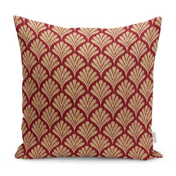 RealHomes Bordo Zeminde Altın Motifli Yaprak Desenli Dijital Baskılı Yastık Kırlent Kılıfı