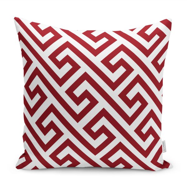 RealHomes Bordo Zeminde Zikzak Motifli Geometrik Desenli Dijital Baskılı Yastık Kırlent Kılıfı