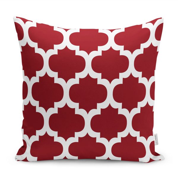 RealHomes Bordo Zeminde Geometrik Motifli Klasik Desenli Dijital Baskılı Yastık Kırlent Kılıfı