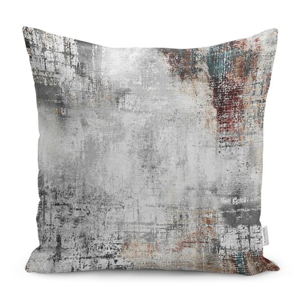 RealHomes Gri Zeminde Eskitme Motifli Duvar Desenli Dijital Baskılı Yastık Kırlent Kılıfı