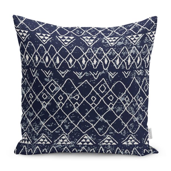 RealHomes Lacivert Zeminde Zikzak Motifli Eskitme Desenli Dijital Baskılı Yastık Kırlent Kılıfı