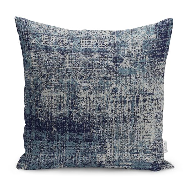 RealHomes Lacivert Zeminde Kanvas Motifli Fırça Darbeleri Desenli Dijital Baskılı Yastık Kırlent Kılıfı