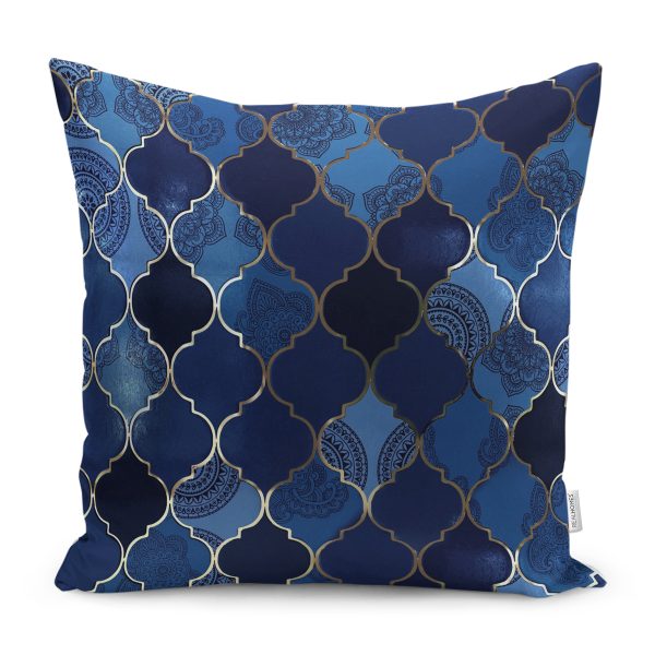 RealHomes Lacivert Zeminde Ogea Motifli Morrocan Desenli Dijital Baskılı Yastık Kırlent Kılıfı