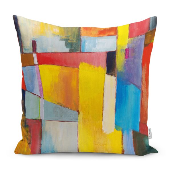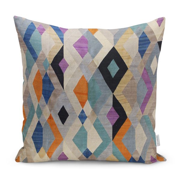 Realhomes Renkli Geometrik Çizimli Dekoratif Dijital Baskılı Yastık Kırlent Kılıfı