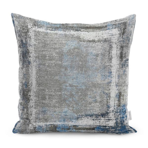 Realhomes Krem Turkuaz Renkli Suluboya Motifli Dijital Baskılı Dekoratif Yastık Kırlent Kılıfı