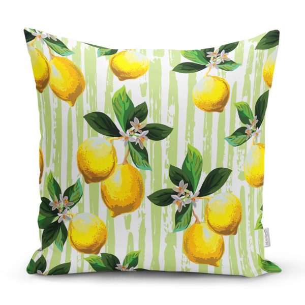 Yeşil Zeminli 3 Boyutlu Limon Desenli Dijital Baskılı Yastık Kırlent Kılıfı