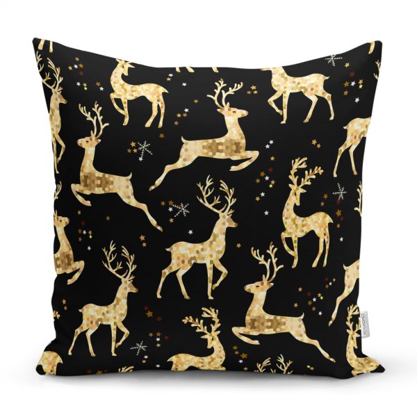 Altın Detaylı Geyikler Desenli Modern Yastık Kırlent Kılıfı