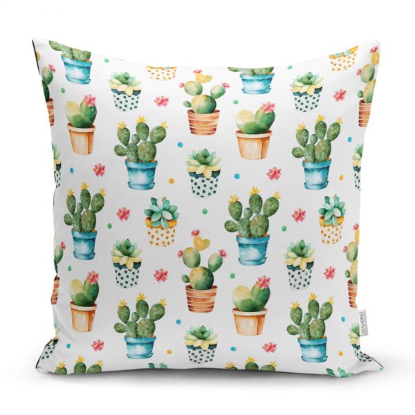 Saksıda Sevimli Kaktüsler Tasarımlı Dekoratif Modern Yastık Kırlent Kılıfı