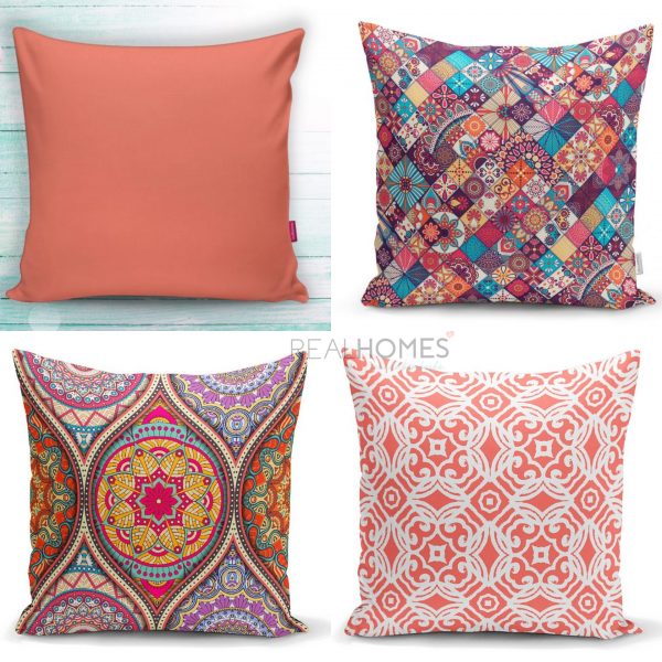 Realhomes Mercan Renkli 4’lü Kombin Dekoratif Kırlent Kılıfı Seti