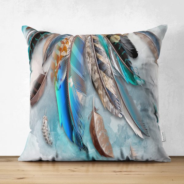 Kuş Tüyü Resimli Dijital Baskılı Dekoratif Yastık Kırlent Kılıfı