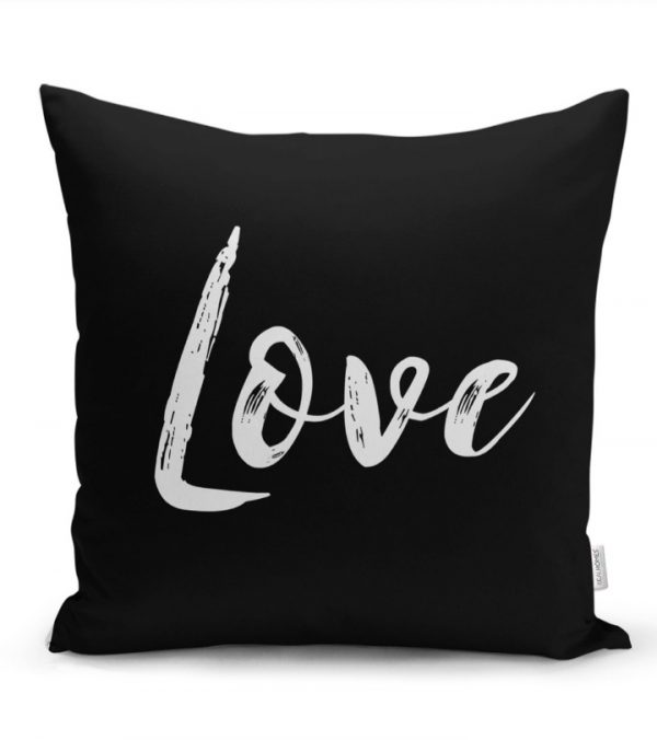 Siyah Zeminde Love Yazılı Dekoratif Yastık Kırlent