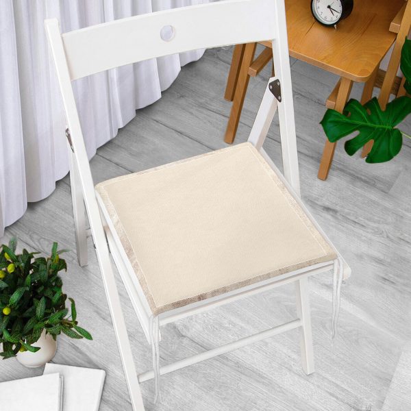 Krem Rengi Özel Tasarım Dijital Baskılı Fermuarlı Sandalye Minderi
