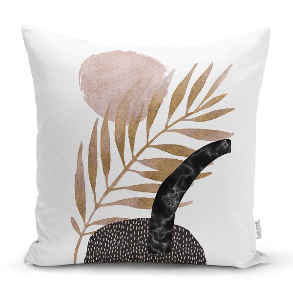 Sulu Boya Yaprak Temalı Dijital Baskılı Modern Kırlent Kılıfı