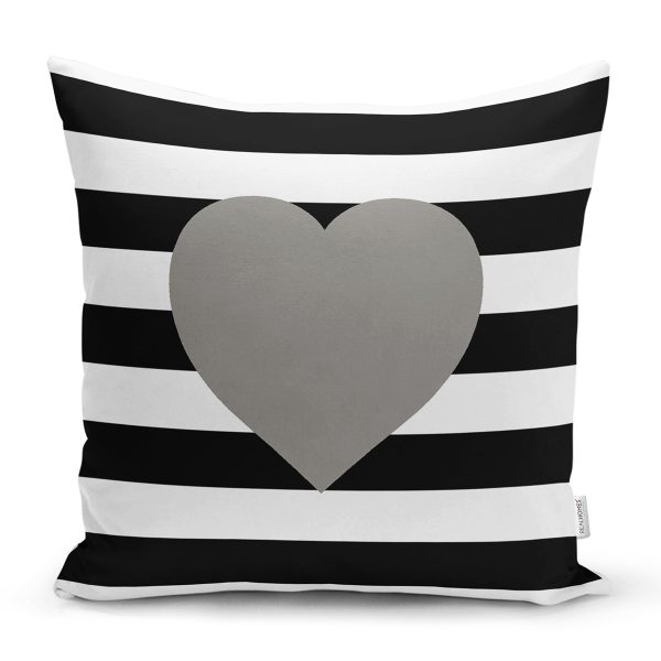 Modern Kalp Desenli Dijital Baskılı Dekoratif Yastık Kırlent Kılı