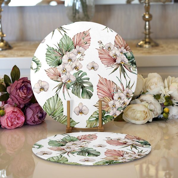 Tropik Yaprak Motifli Dijital Baskılı Dekoratif 2’li Yuvarlak Servis Altlığı – Supla