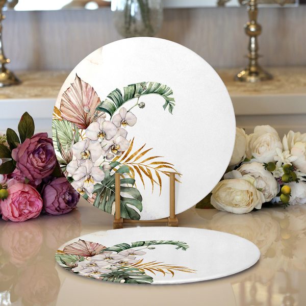 Tropik Yaprak Motifli Dijital Baskılı Modern 2’li Yuvarlak Servis Altlığı – Supla
