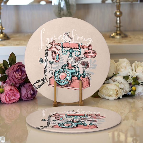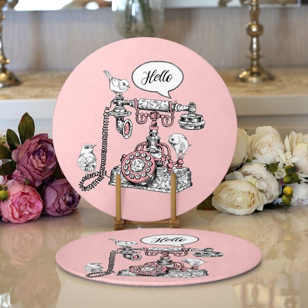 Pembe Zemin Kalpli Antika Telefon Tasarımlı Dijital Baskılı Dekoratif 2’li Yuvarlak Servis Altlığı – Supla