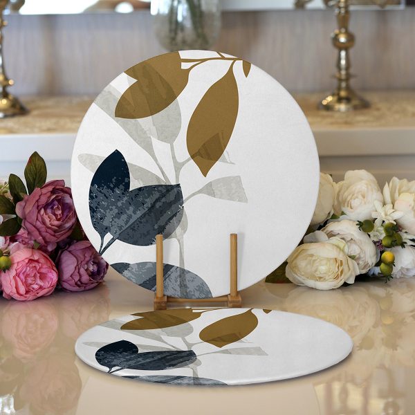Özel Tasarım Yaprak Motifli Dijital Baskılı Modern 2’li Yuvarlak Servis Altlığı – Supla