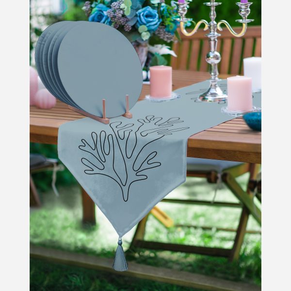 Onedraw Yaprak Çizimli Özel Tasarım 6+1 Supla Runner Seti