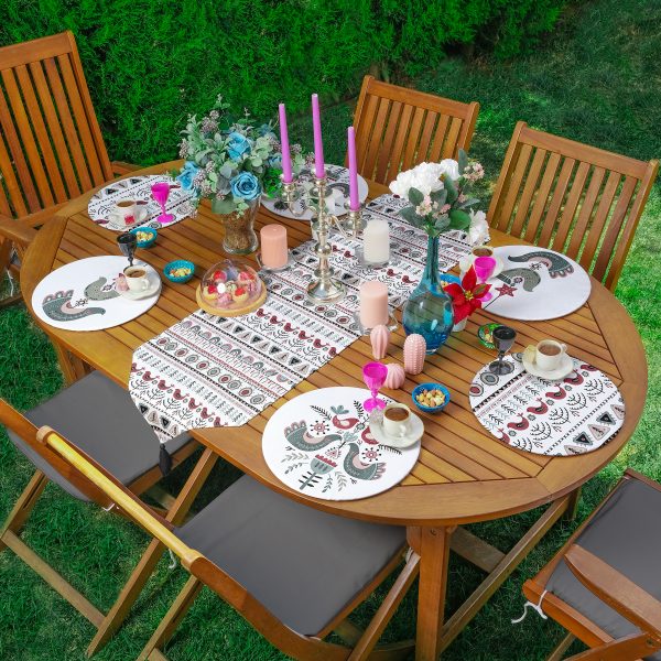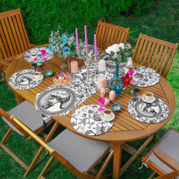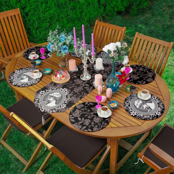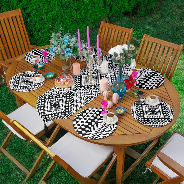 Siyah Beyaz Etnik Figürlü 6+1 Supla Runner Seti
