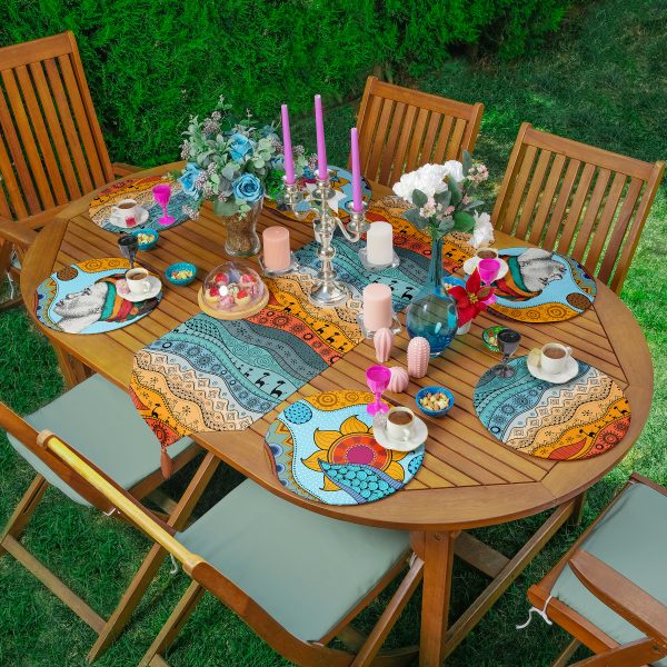 Renkli Etnik Figürlü Özel Tasarım 6+1 Supla Runner Seti