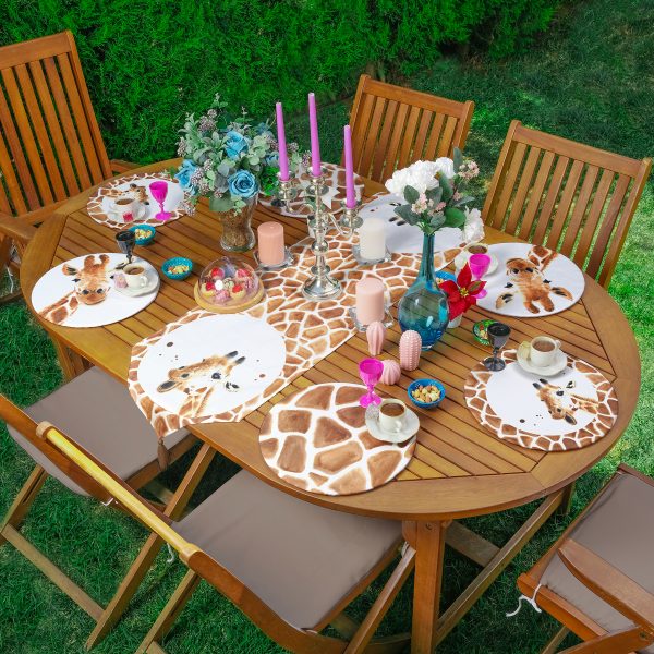 Zürafa Motifli Dijital Baskılı Özel Tasarım 6+1 Supla Runner Seti