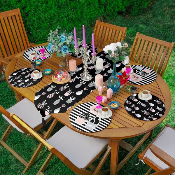Siyah Zemin Saksı Kaktüs Motifli 6+1 Supla Runner Seti