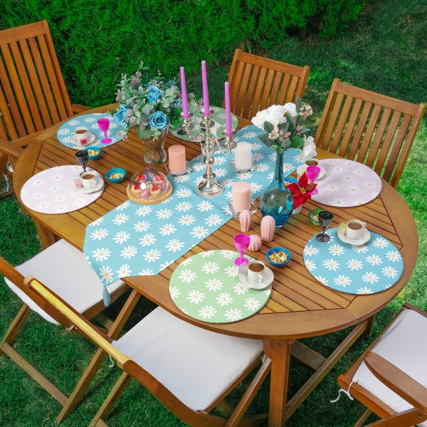 Renkli Zemin Papatya Desenli Dijital Baskılı 6+1 Supla Runner Seti