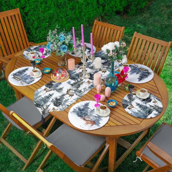 Kış Temalı Çam Ağaçları Özel Tasarım 6+1 Supla Runner Seti