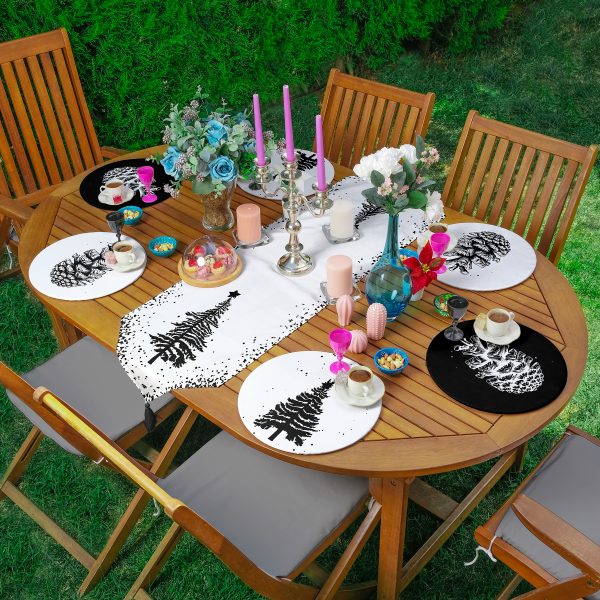 Realhomes Siyah Beyaz Çam Ağacı Kozalak Baskılı 6+1 Supla Runner Seti