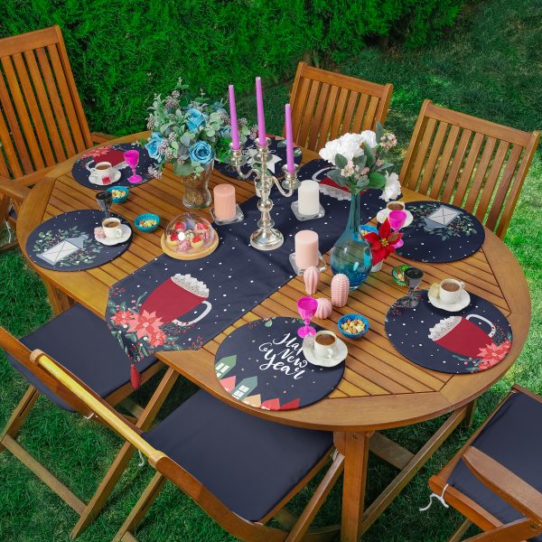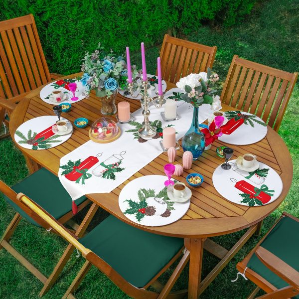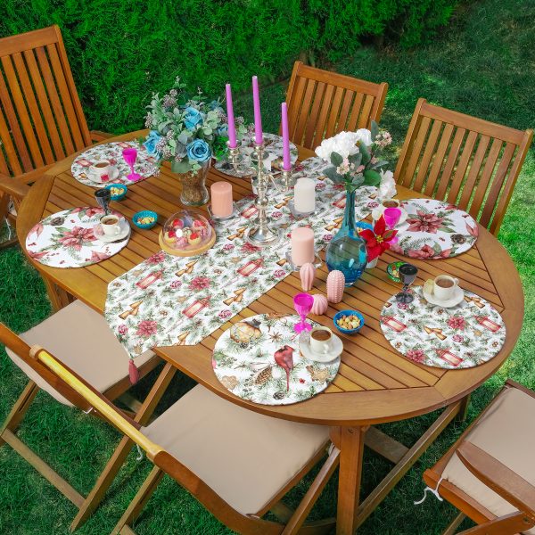Yılbaşı Temalı Mum & Kozalak Tasarımlı 6+1 Supla Runner Seti