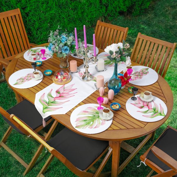 Renkli Tropik Yaprak Özel Tasarım Motifli 6+1 Supla Runner Seti