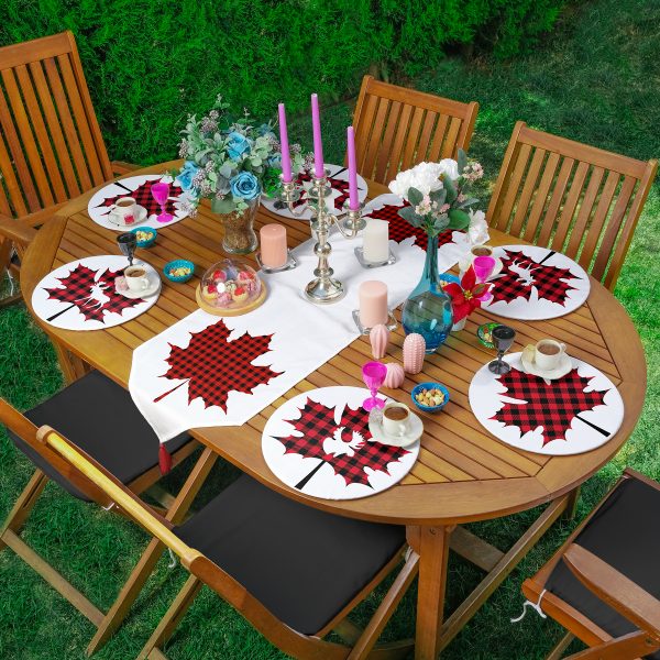 Ekose Yaprak Motifli Dijital Baskılı 6+1 Supla Runner Seti