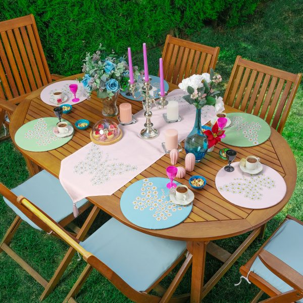 Pembe Çiçek Demetleri Özel Tasarım 6+1 Supla Runner Seti