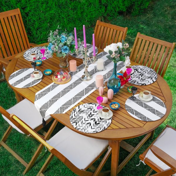 Siyah Beyaz İskandinav Motifli 6+1 Supla Runner Seti