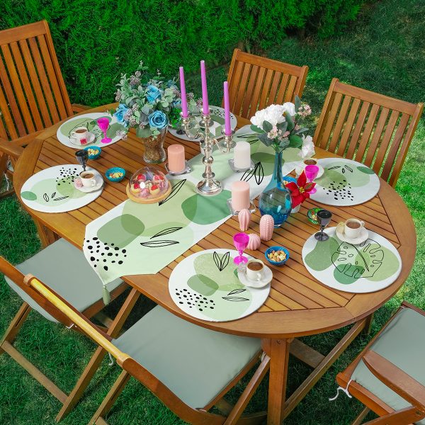 6+1’li Yeşil Yaprak Tasarımlı Supla Runner Seti