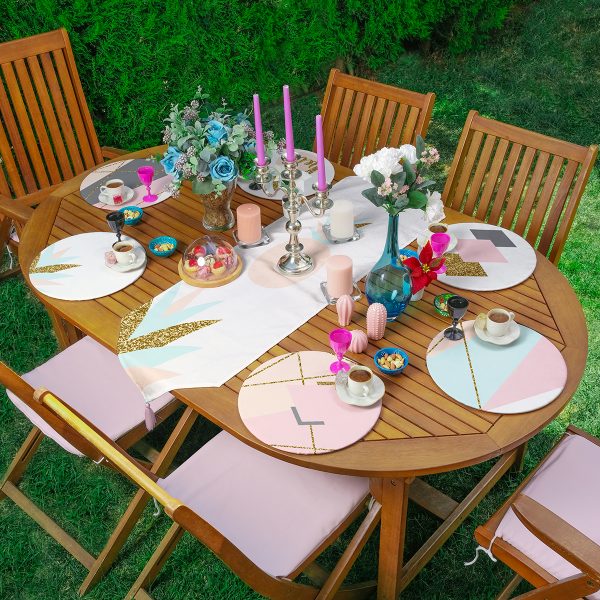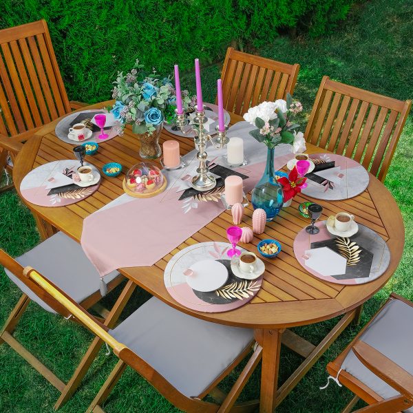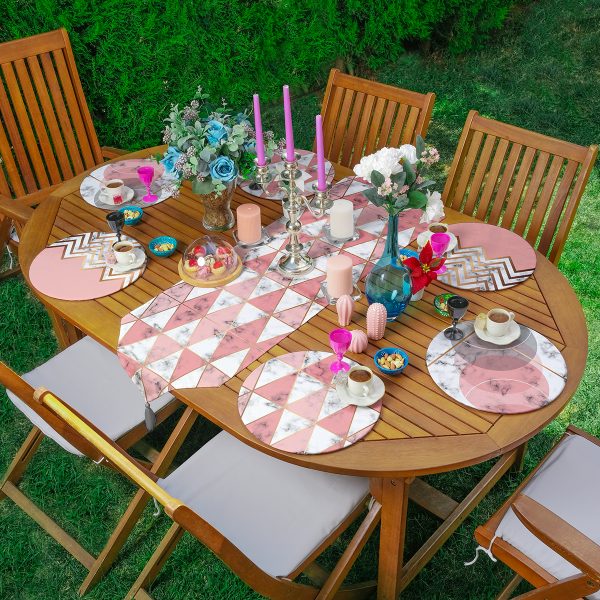 6+1’li Pembe & Mermer Desen Tasarımlı Supla Runner Seti