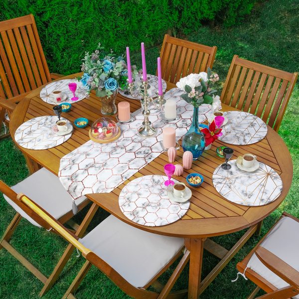 6+1’li Mermer Zeminli Geometrik Şekiller Supla Runner Seti