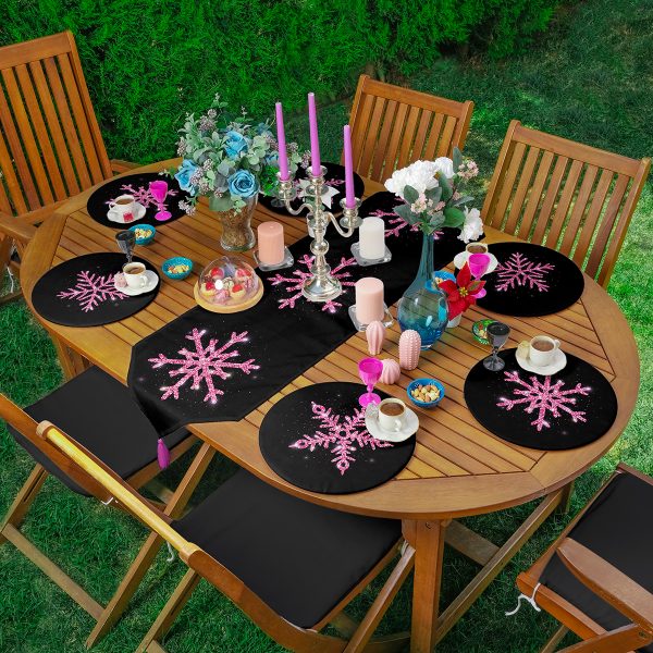 6+1’li Siyah Zemin Pembe Kar Taneleri Özel Tasarım Supla Runner Seti