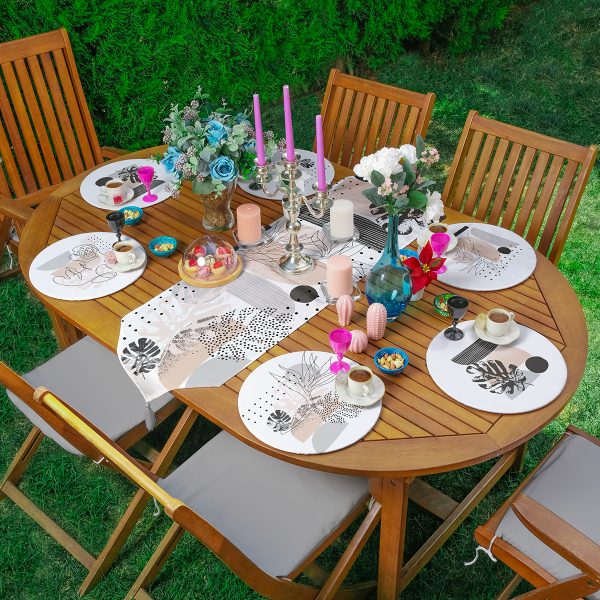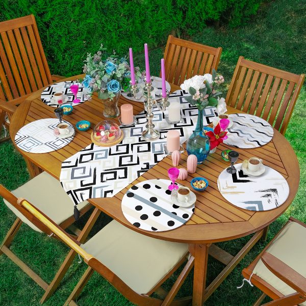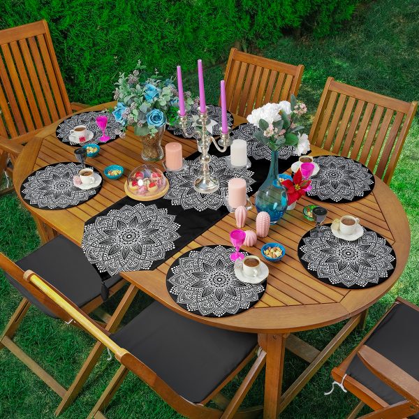 6+1’li Siyah Beyaz Mandala Özel Tasarım Supla Runner Seti
